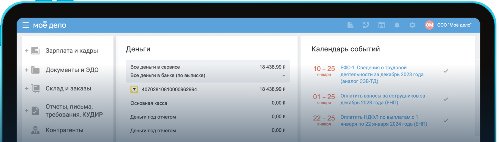 Оставьте заявку на получение интернет-бухгалтерии «Моё дело» со скидкой